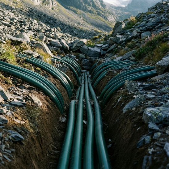 Installation et maintenance complète des réseaux divers (eau, assainissement, électricité) dans des conditions de terrain difficiles. Ce projet démontre l'expertise en VRD, essentielle à l'infrastructure des communes et des professionnels en montagne.